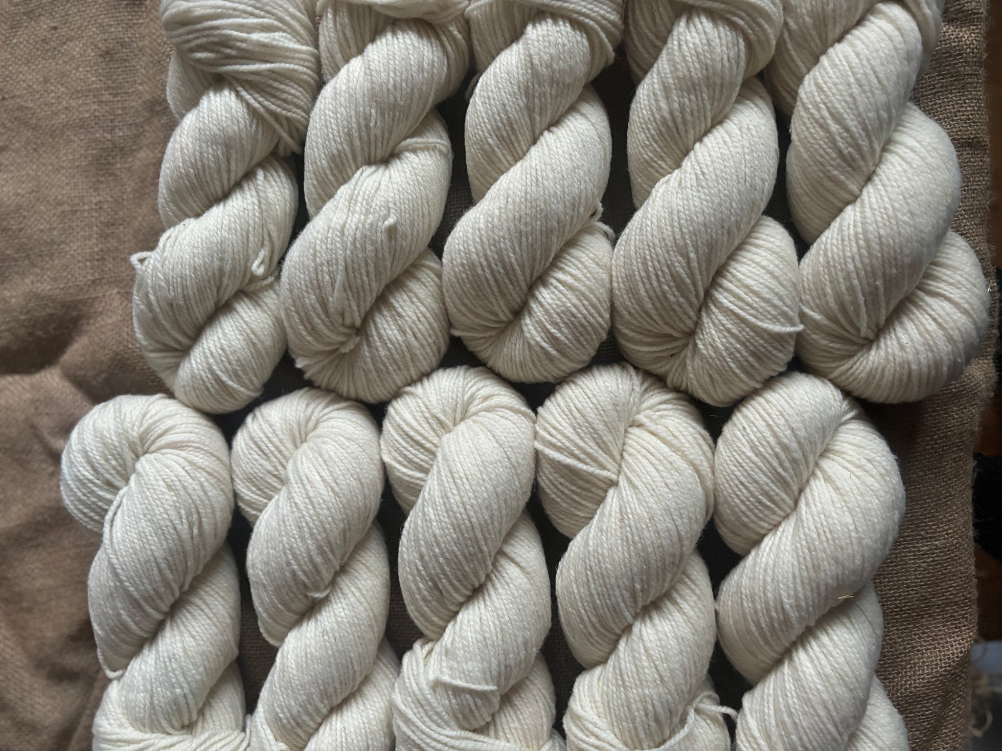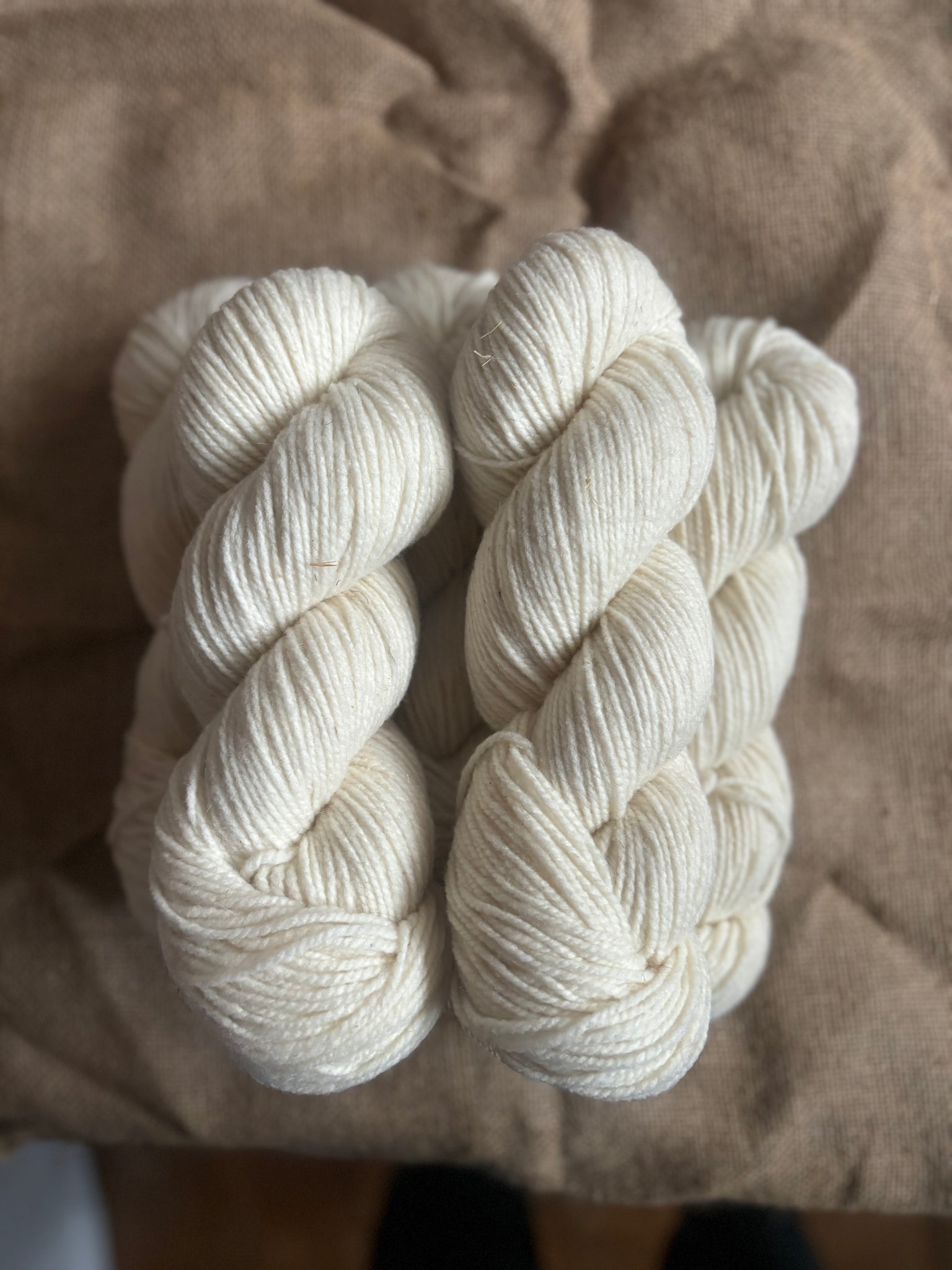 Surprisingly  soft enough to wear against your skin. This yarn is plump and an excellent choice for colourwork and structured garments.  You can get 12 to 18 sts with this base.